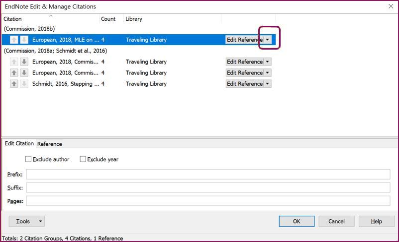 Redaguodami ir naikindami nuorodas į cituojamus šaltinius visada naudokite mygtuką Edit Citation(s), nes tai vienintelis saugus būdas visiems nematomiems kodams pašalinti.