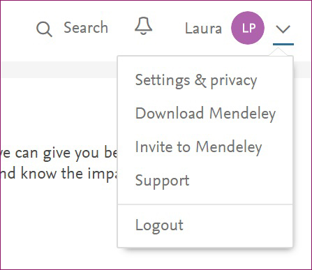 - Spustelėkite dešinėje lango pusėje viršuje esančią varnelę ir iš išskleidžiamojo meniu pasirinkite Download Mendeley (žr. 3 pav.).