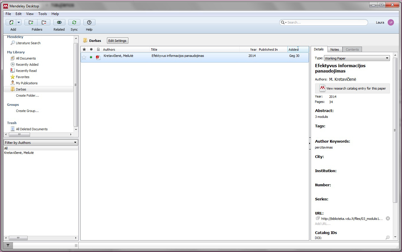 Patogiam ir produktyviam darbui bei citavimui užtikrinti turite į savo kompiuterį atsisiųsti ir įdiegti programos Mendeley versiją Mendeley Desktop.