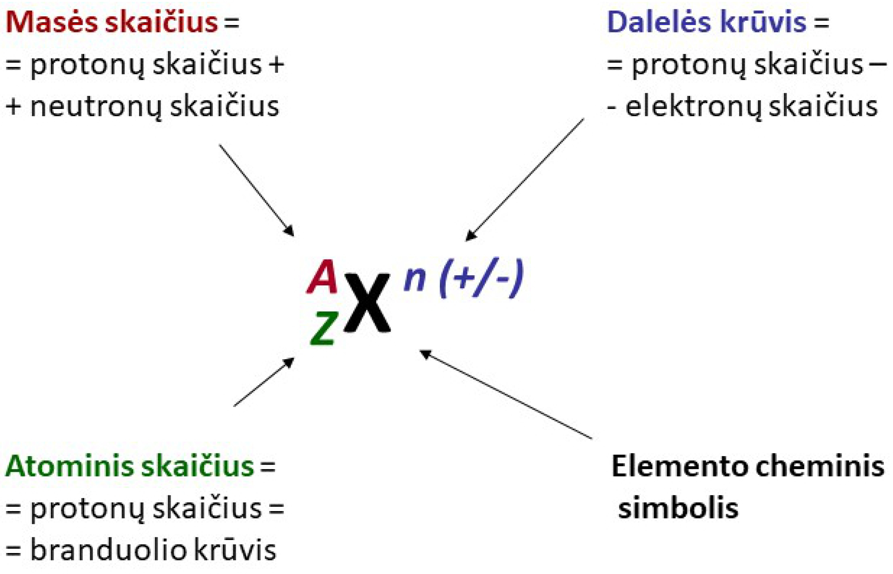 2.1.1. pav. Atomo ar dalelės žymėjimas