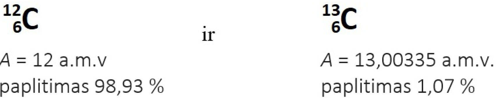 Dauguma cheminių elementų gamtoje egzistuoja kaip izotopų mišiniai. Periodinėje elementų lentelėje yra nurodytos gamtinių izotopų mišinių vidutinės santykinės atominės masės. Jos apskaičiuojamos, įvertinant kiekvieno izotopo masės skaičių ir santykinį paplitimą gamtoje. Egzistuoja du anglies izotopai
