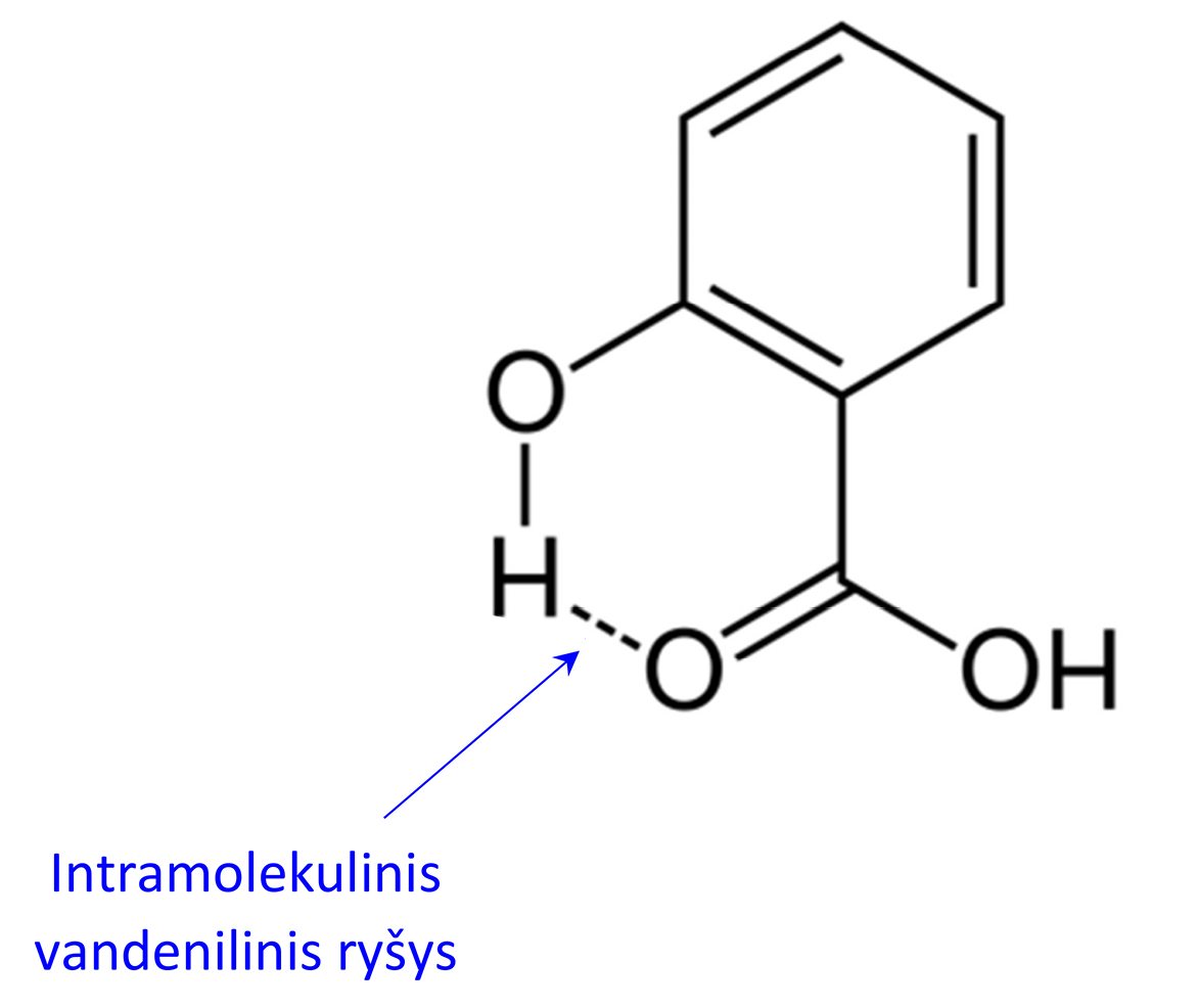 2.4.3. pav. Intramolekulinis vandenilinis ryšys 2-hidroksibenzenkarboksirūgšties (salicilo rūgšties) molekulėje