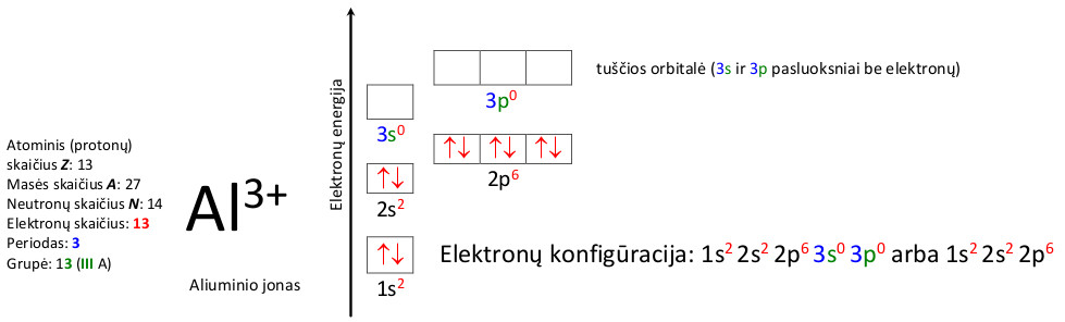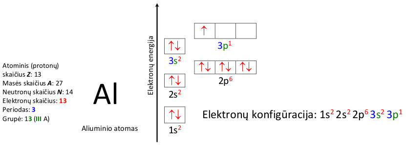 Aliuminio atomo ir fluorido jono elektronų konfigūracija