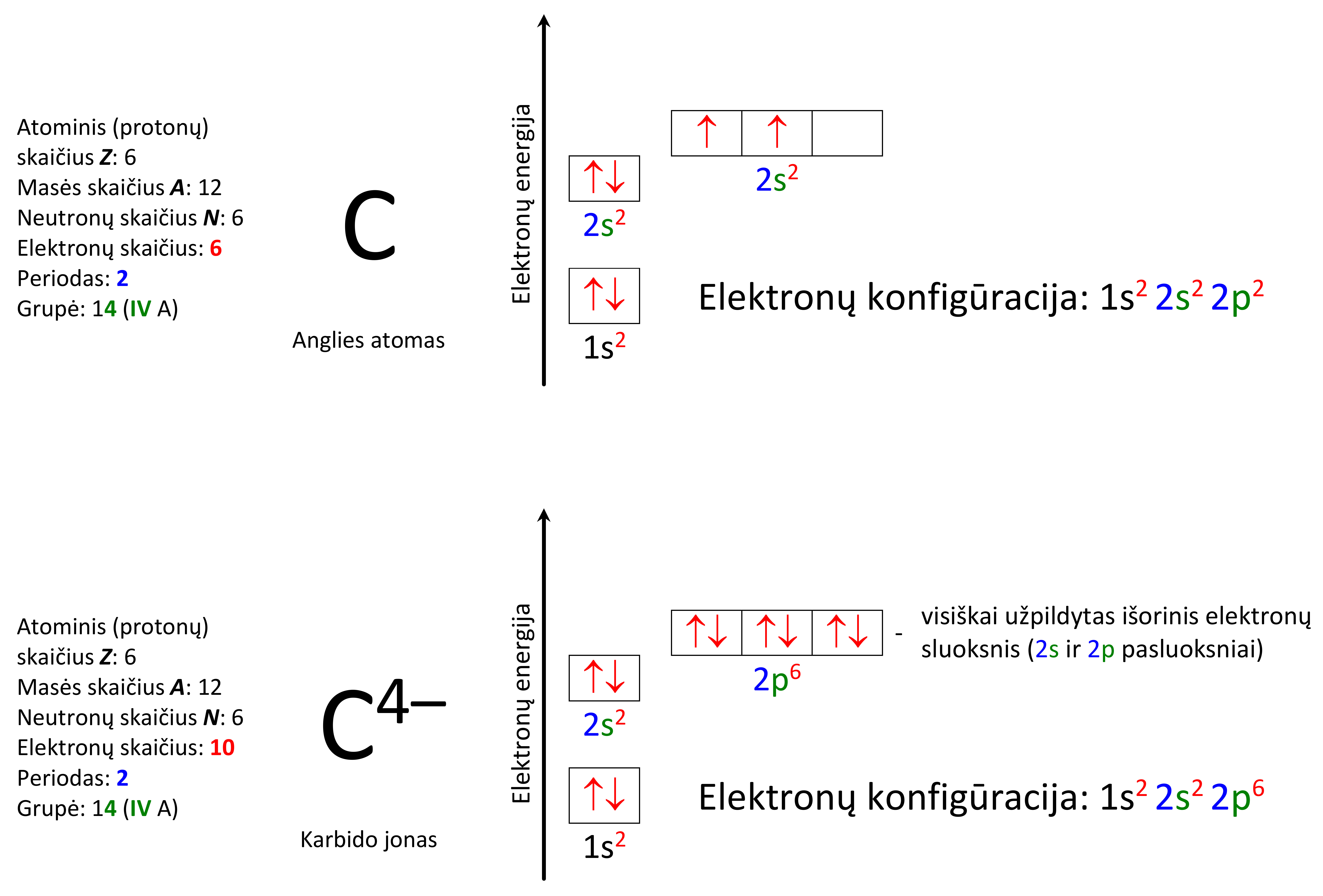Anglies atomo ir karbido jono elektronų konfigūracija