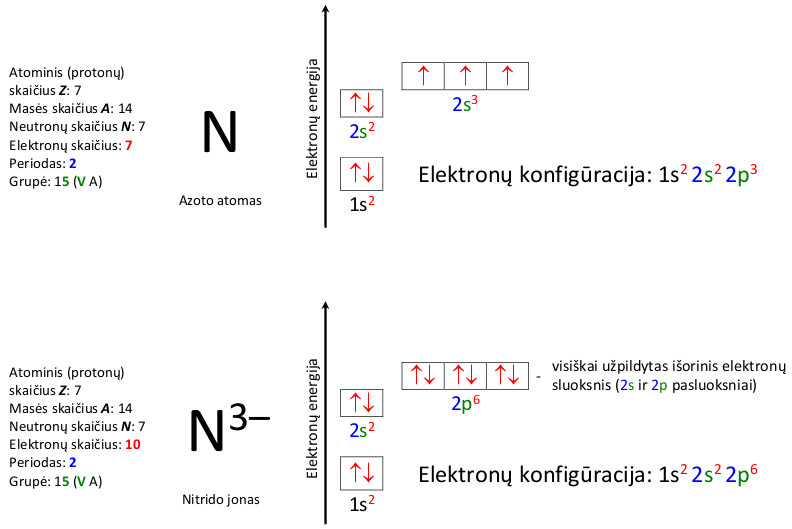 Azoto atomo ir nitrido jono elektronų konfigūracija