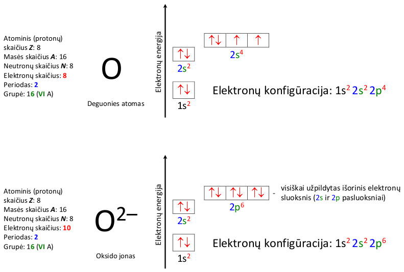 Deguonies atomo ir oksido jono elektronų konfigūracija
