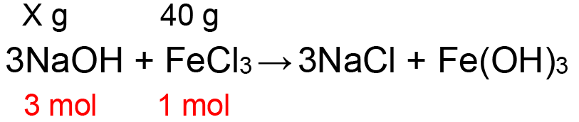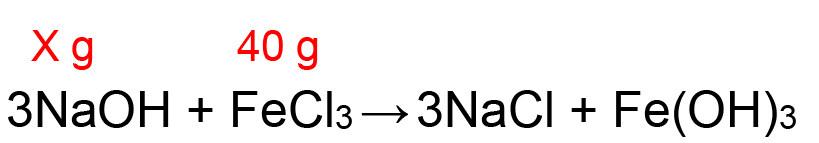 ● Statome proporciją:X g NaOH – 40 g FeCl3