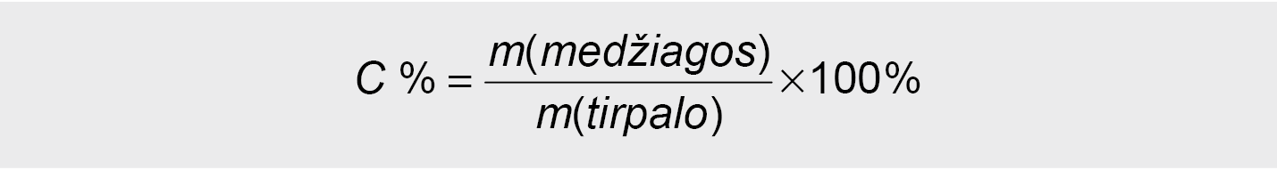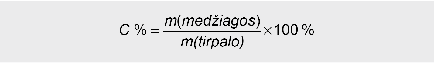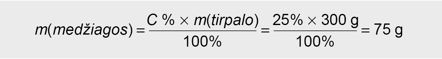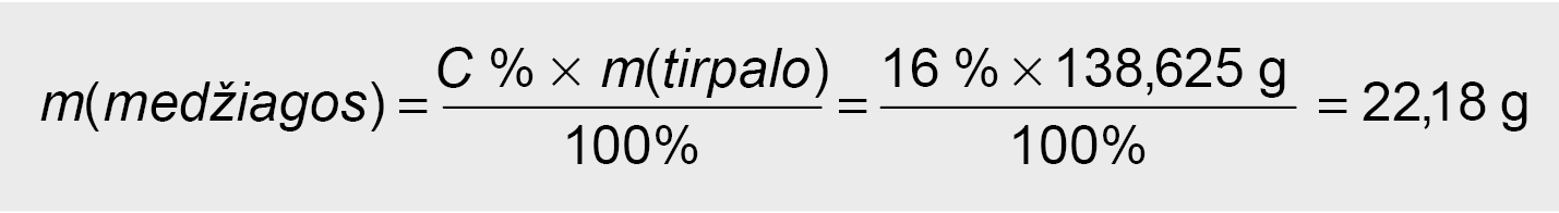 ● Tada skaičiuojame proporciją kiek grynos medžiagos: