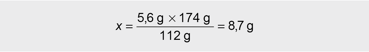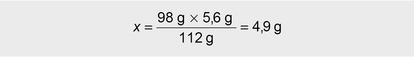 m = n x M = 0,1 mol x 56 g/mol = 5,6 g