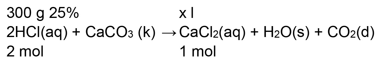 2HCl(aq) + CaCO3 (k) → CaCl2(aq) + H2O(s) + CO2(d)