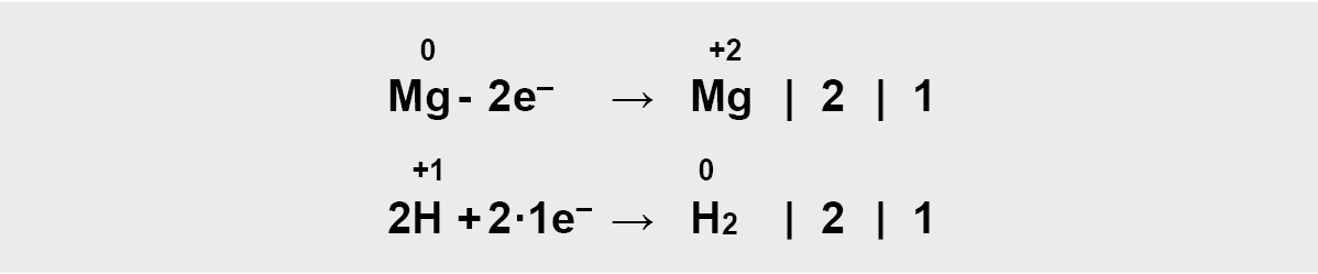 Prisijungtų elektronų skaičius turi būti lygus atiduotų elektronų skaičiui, todėl parenkami daugikliai (šiuo atveju 1)