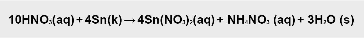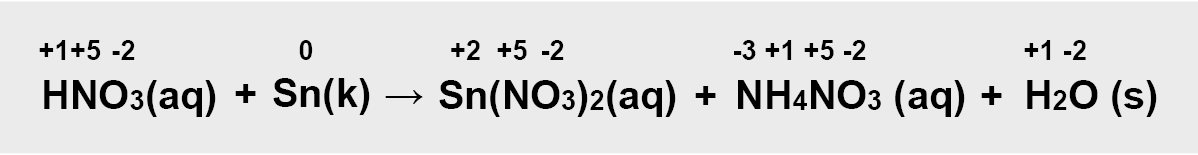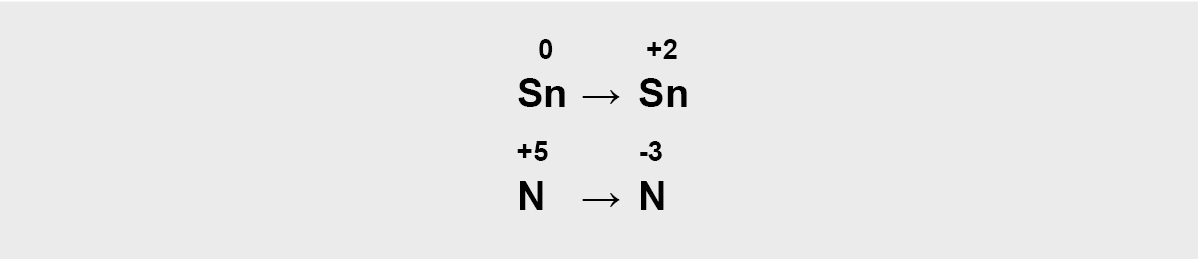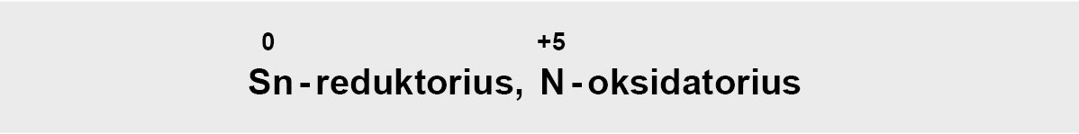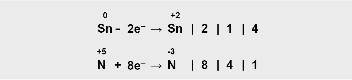 Prisijungtų elektronų skaičius turi būti lygus atiduotų elektronų skaičiui, todėl parenkami daugikliai (šiuo atveju 4 rašome prie Sn, o 1 prie N po reakcijos)