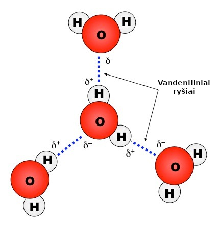 Vanduo, kaip cheminis junginys H2O, yra labai unikalių savybių medžiaga. Dėl kovalentinio ryšio elektronų pasislinkimo nuo H atomų link O atomo, pastarasis H2O molekulėje įgyja dalinį neigiamą, o H atomai – dalinį teigiamą krūvį. Dėl tokio krūvio pasiskirstymo H2O molekulės yra polinės ir tarpusavyje sudaro vandenilinį ryšį. Šis ryšys nulemia daugelį kitų vandens savybių, pvz. gan aukštas stingimo (užšalimo) ir virimo temperatūras, didelį paviršiaus įtempį. Dėl vandenilionio ryšio skystos būsenos H2O tankis, esant 4 oC temperatūrai, yra didžiausias, o kietos būsenos H2O (ledo) tankis, esant 0 oC ir žemesnei temperatūrai, yra mažesnis.