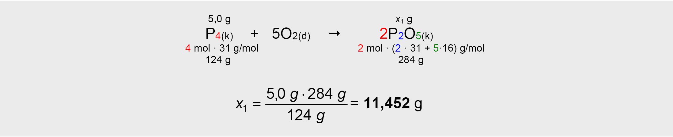 2. Pagal pirmąją reakcijos lygtį apskaičiuojama teorinė susidariusio fosforo(V) oksido masė x1: