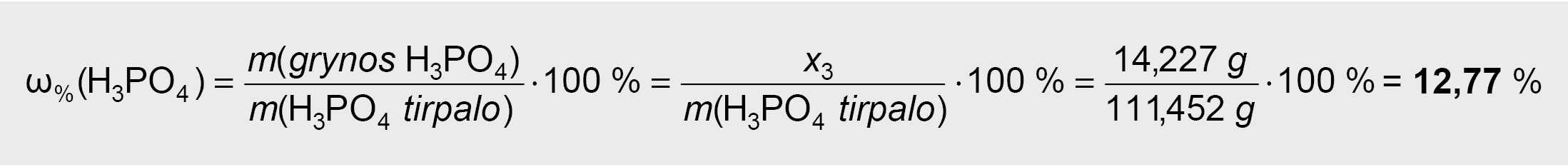 6. Apskaičiuojama ortofosfato(V) rūgšties H3PO4 procentinė (masės dalies) koncentracija gautame tirpale: