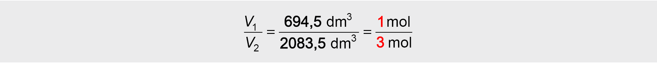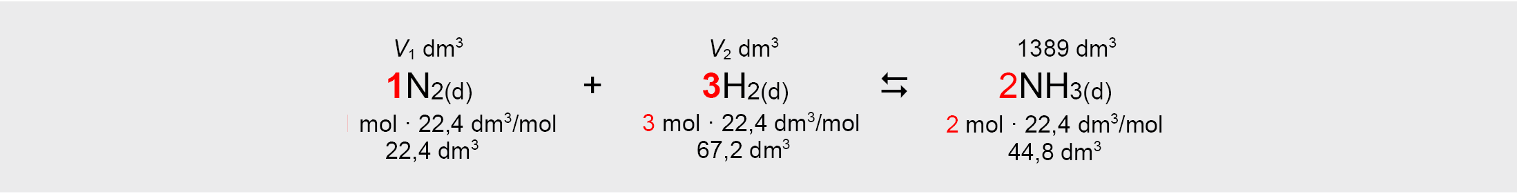 Atkreipkite dėmesį: apskaičiuotas N2 ir H2 dujų tūrių (n.s.) santykis yra toks pat, kaip reakcijoje dalyvaujančių N2 ir H2 molekulių (molių) skaičiaus santykis, t.y.: