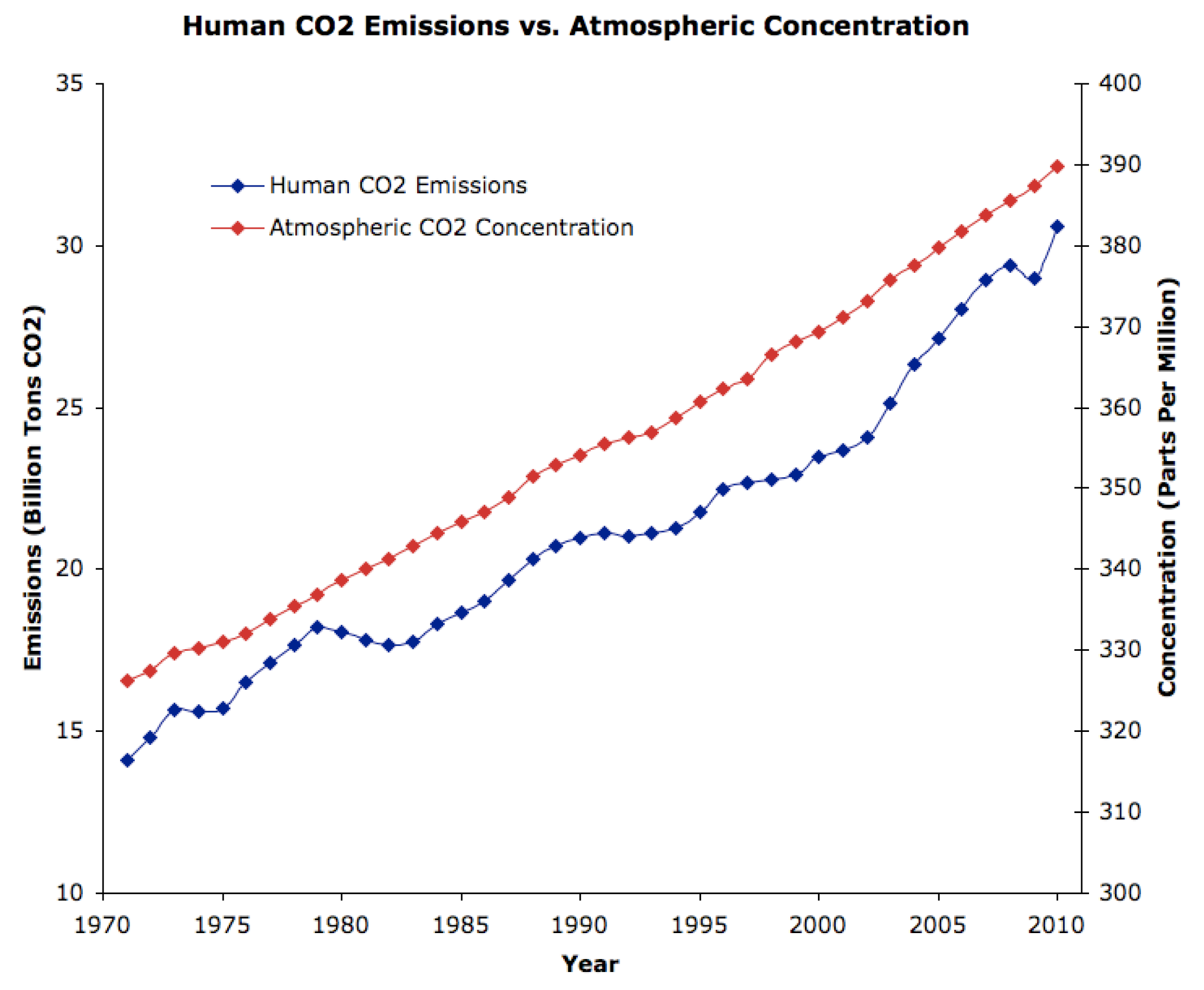 Grafike pateikti dujų koncentracijos atmosferoje matavimo vienetai yra: ppm – milijoninė dalis, ppb – milijardinė dalis
