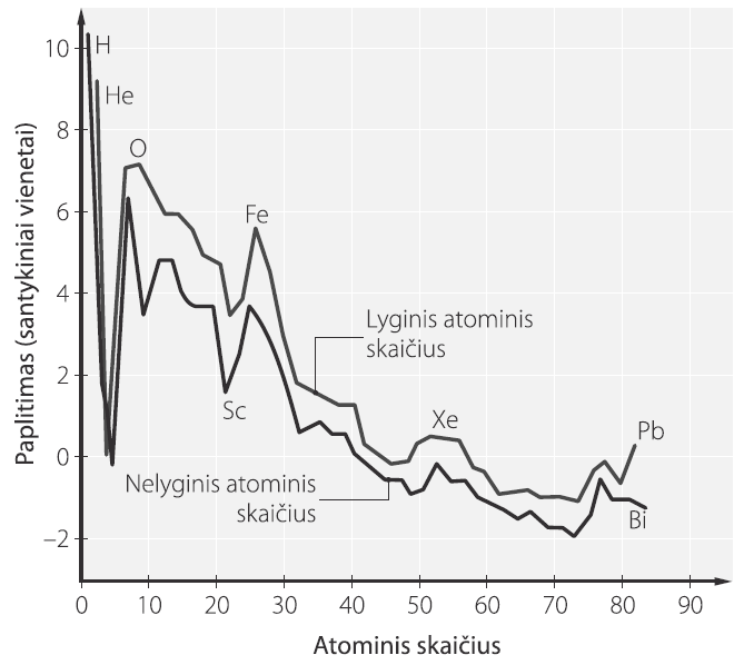• Lyginio atominio skaičiaus cheminiai elementai daugiau paplitę negu nelyginio atominio skaičiaus.