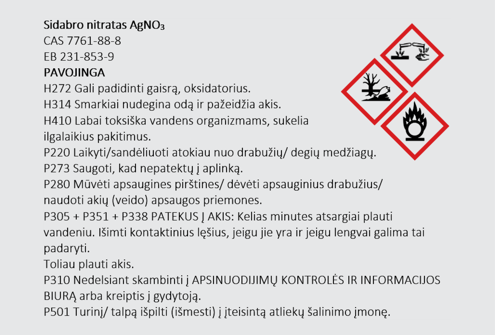 nuoroda. Visos naudojamos cheminės medžiagos turi turėti įspėjamąją etiketę ir saugos lapą.