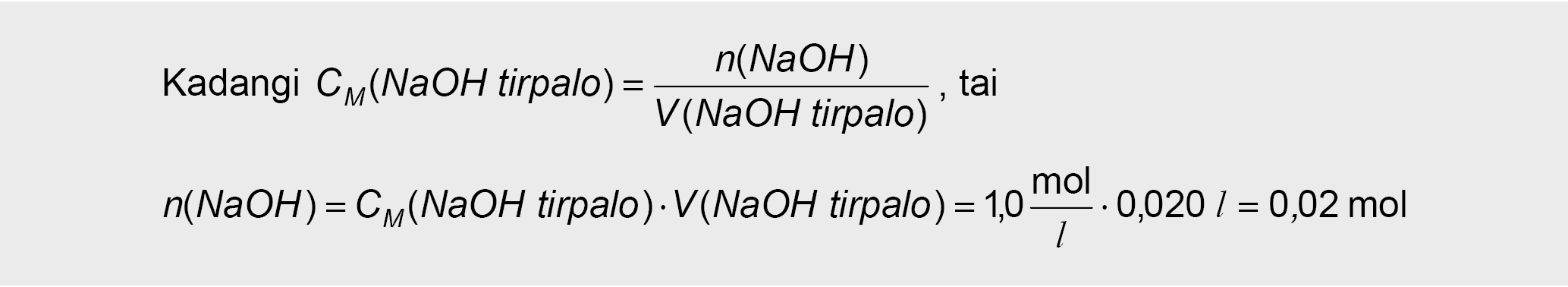 2. Toliau apskaičiuojama paskutinėje, (IV) reakcijoje dalyvavusio NaOH kiekis moliais: