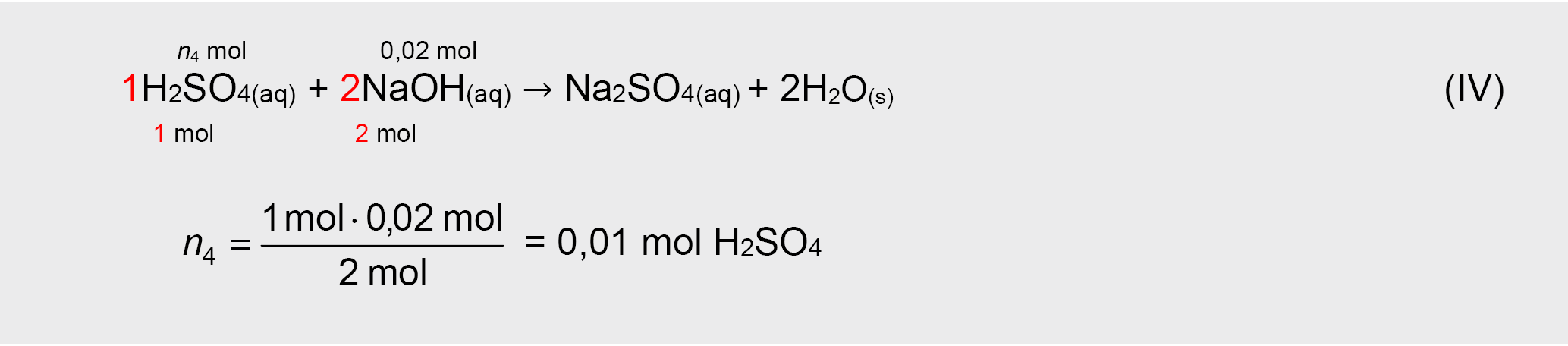 (VI) reakcijoje su NaOH sureagavusios H2SO4 kiekis n4, kuris taip pat yra lygus (III) reakcijoje susidariusios H2SO4 kiekiui