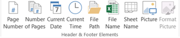 2 pav. Antraštės ir poraštės elementai (Header & Footer Elements) komandų grupė