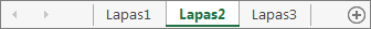 • Du arba daugiau ne šalia esančių lapų. Pasirinkite pirmojo lapo skirtuką, tada laikydami nuspaudę klavišą CTRL, pažymėkite kitų norimų lapų skirtukus.