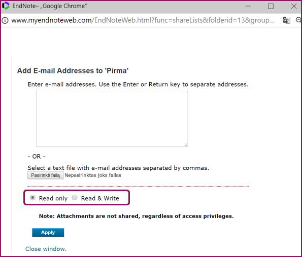 - Nurodykite naudojimosi įrašais sąlygas: Read only (Tik skaityti) arba Read & Write (Skaityti ir koreguoti) (žr. 14 pav.).