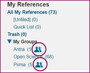 15 pav. Piktograma, rodanti grupes, kurių įrašais yra pasidalyta