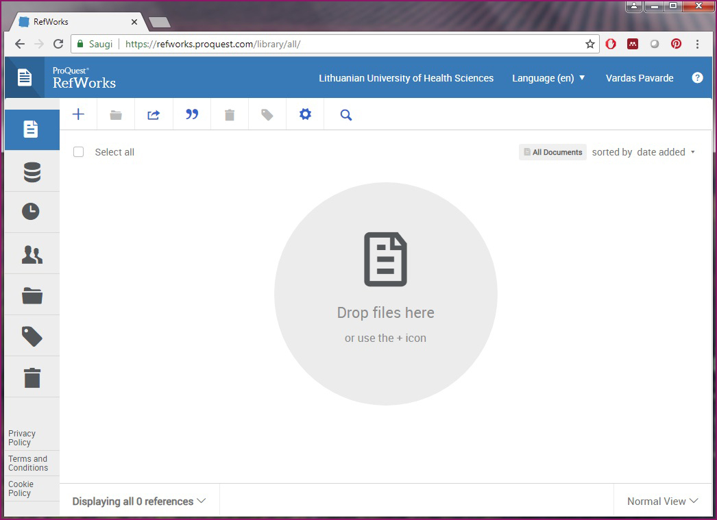 1 pav. Pagrindinis programos RefWorks langas