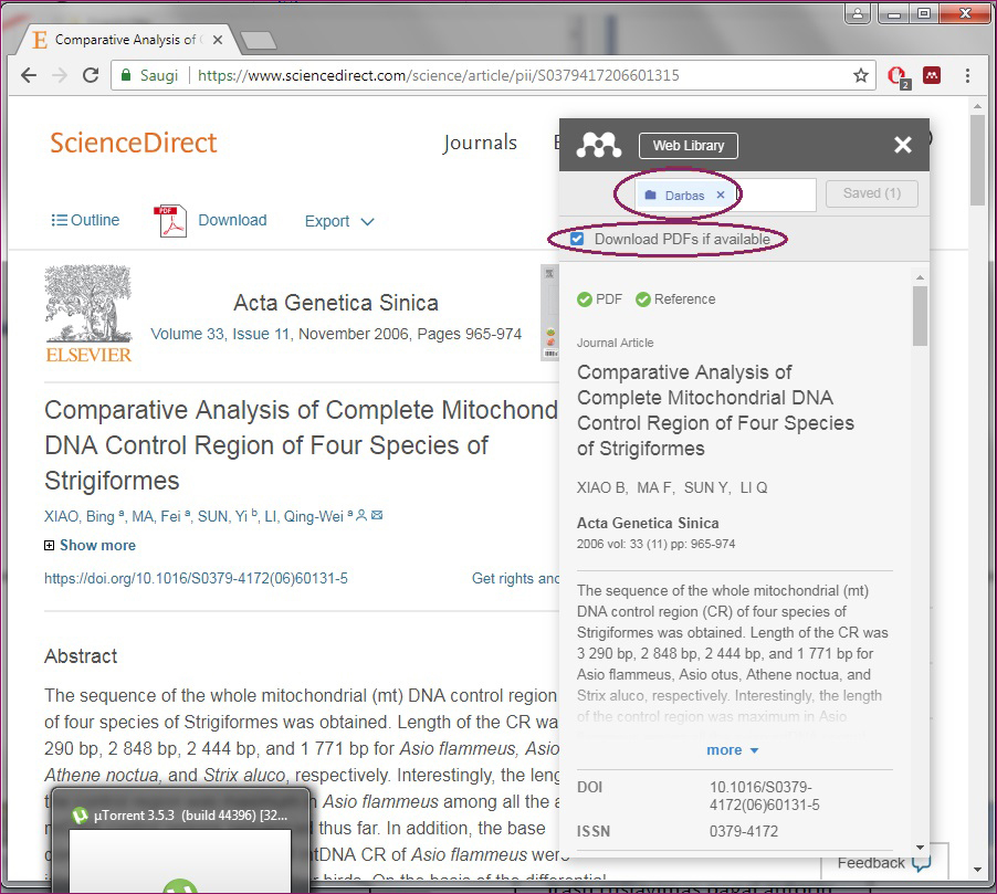 6 pav. Įrašo įkėlimas iš duomenų bazės ScienceDirect