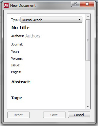 Įrašus į programą Mendeley galite įrašyti ir rankiniu būdu.