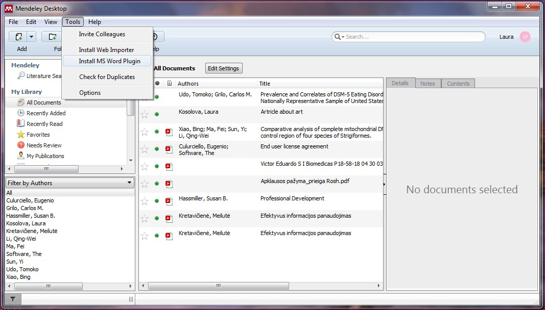 Moksliniams darbams cituoti turite į programą Microsoft Word įsidiegti įskiepį Mendeley Cite-O-Matic.
