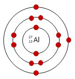 Al yra trečiajame periodinės elementų lentelės periode. Šio periodo cheminių elementų atomuose elektronais pildomas trečias sluoksnis (energijos lygmuo). Aliuminio atome yra 13 elektronu ir tai yra 3 daugiau nei neono atome. 11-13 elektronai pildo naują sluoksnį (energijos lygmenį).