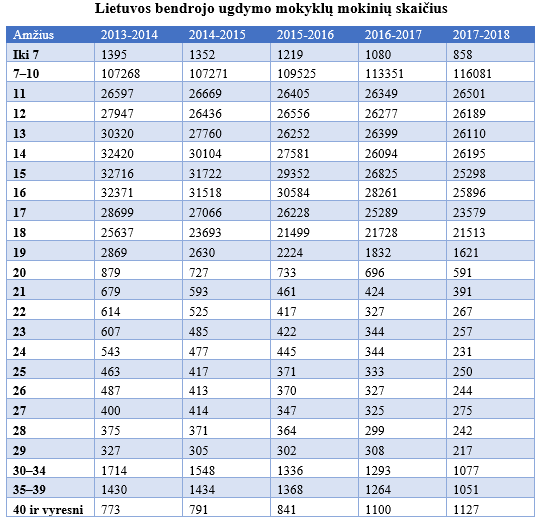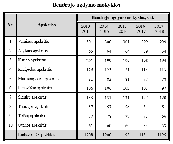 • eilučių, kuriose surašyti konkretūs apskričių bendrojo ugdymo mokyklų skaičiai, aukštis – 0,6 cm;