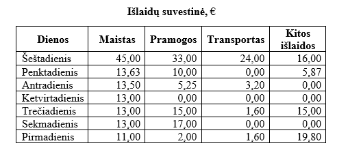 • pirmajame šio dokumento lape esančią informaciją konvertuokite į lentelę (žr. 5 pav.);